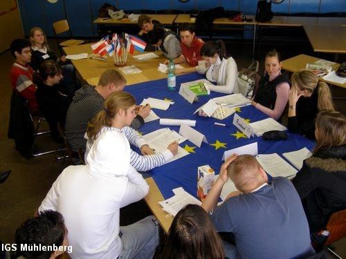 Die Klasse 11e der IGS Mühlenberg hat mit der Forschungsgruppe Jugend und Europa sehr erfolgreich ein Planspiel zum Thema "Energiepolitik in Europa" durchgeführt. Die SchülerInnen simulierten einen Entscheidungsprozess im Europäischen Parlament, der sich mit dem Thema "Erneuerbare Energien in Europa" beschäftigte. Das Projekt hat den SchülerInnen nicht nur Spaß gemacht; wie aktuell und wirklichkeitsnah die Arbeit gewesen ist, zeigt darüber hinaus die Tatsache, dass die Europäische Kommission am folgenden Tag (zwar zufällig, für die Schüler aber sehr motivierend!) exakt den Beschluss verabschiedet hat, den die Klasse zuvor erarbeitet hatte. Die Forschungsgruppe Jugend und Europa ist ein bundes- und europaweit tätiges Beratungszentrum für die politische Bildungs- und Jugendarbeit. Sie ist Teil des Centrums für angewandte Politikforschung der Ludwig-Maximilians-Universität München, die politische Bildung nicht einfach per Wissensvermittlung, sondern durch praktische Arbeit z.B. in Planspielen erarbeiten und vermitteln will. [Dagmar Dagg]