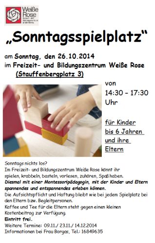 „Sonntagsspielplatz“ am Sonntag, den 26.10.2014 im Freizeit- und Bildungszentrum Weiße Rose (Stauffenbergplatz 3)