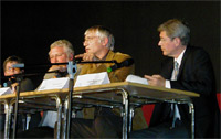 Zum Abschluss des offiziellen Teils der Veranstaltung diskutierten Bärbel Husmann, Dozentin der ev. Landeskirche, Olaf Brandes, Geschäftsführer der Stiftung Niedersachsenmetall, Bernd Ritter, Leitender Regierungsschuldirektor bei der Bezirksregierung Hannover, und Gerhard Regenthal, CIA, unter der Moderation von Dr. Hans-Jürgen Müller, Didaktischer Leiter der Steuerungsgruppe, über die Frage: (Wozu) brauchen Schulen ein Schulprogramm?